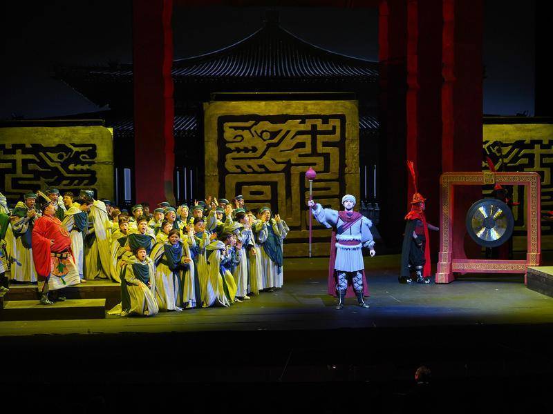 10月10日拍摄的“中国香港版”歌剧《杜兰朵》表演现场。新华社记者 陈铎 摄