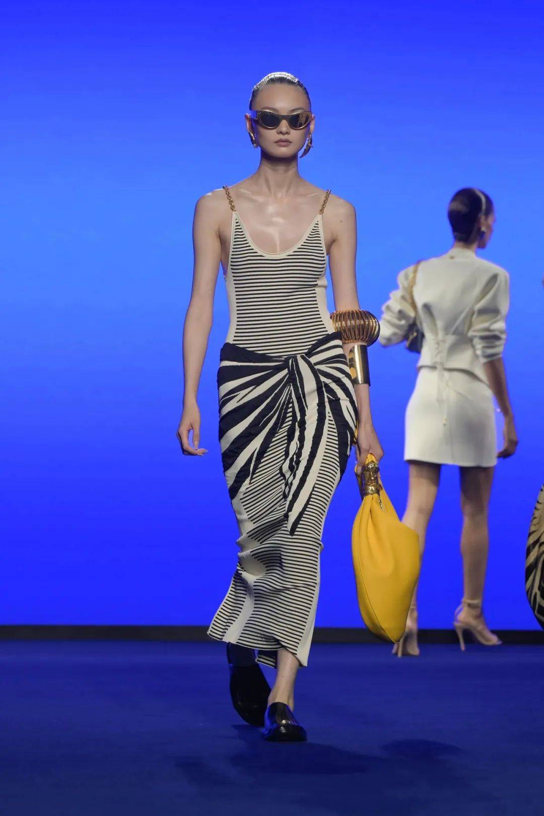 无论是模特手中盘绕的腰带,还是针织连衣裙上缝合的绒面革条,都展现出了Roseberry对于细节的极致追求和对于时尚的独特理解。