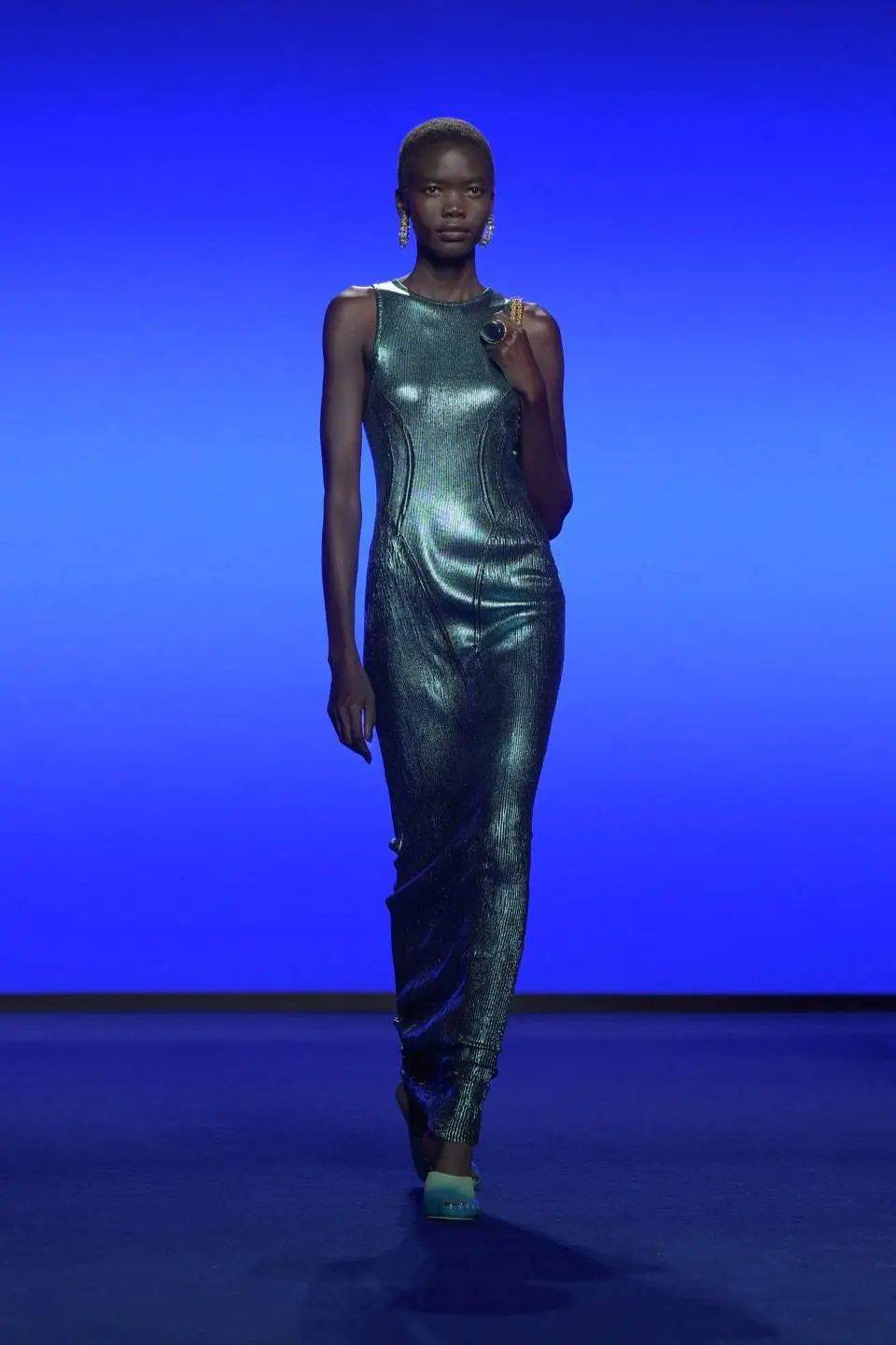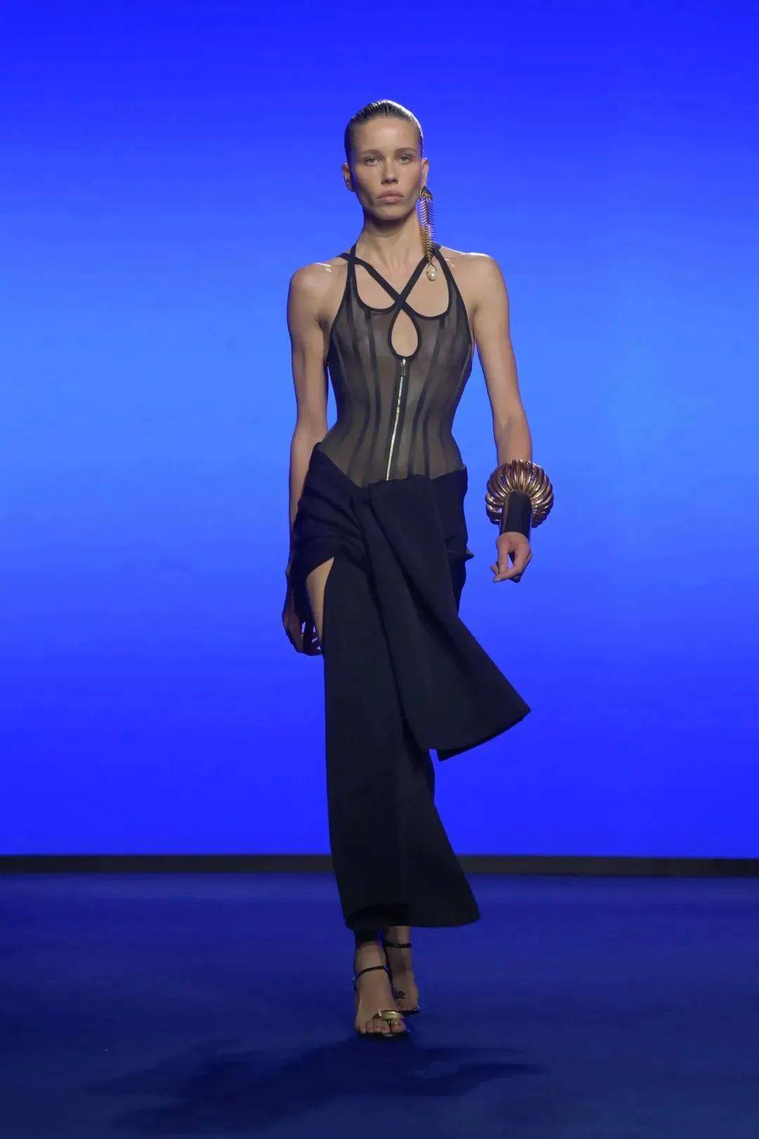 而在这基础之上,Roseberry还对服装的结构与比例进行了大胆的创新,使得整个系列呈现出一种前所未有的先锋审美。特别是腰部线条的变化,更是让人眼前一亮,成为了整个系列的亮点之一。