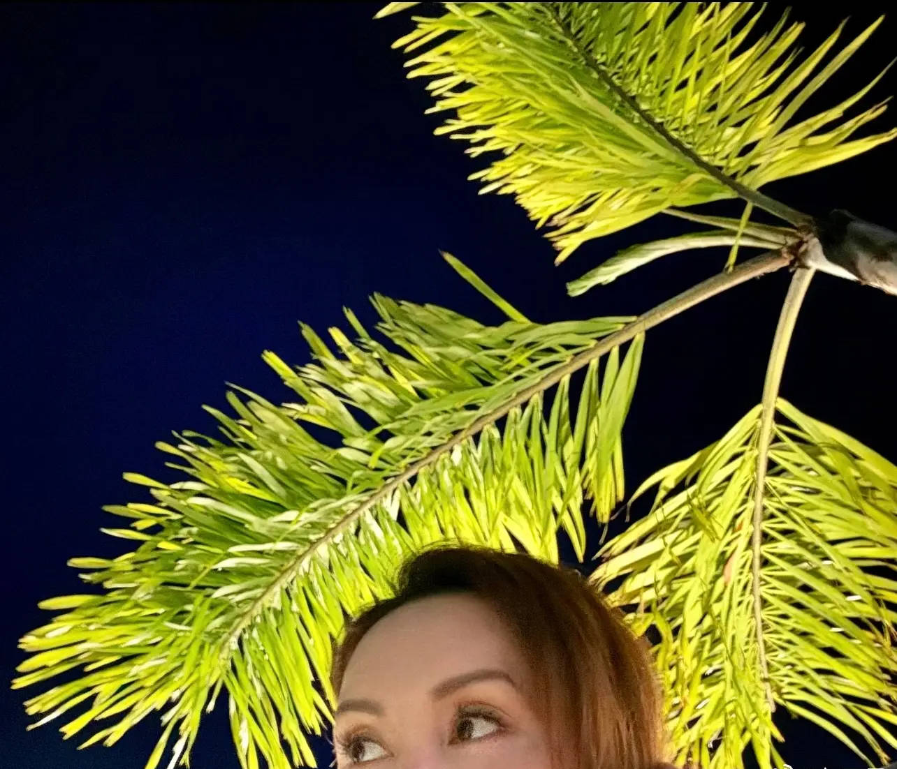 郭可盈双臂展开倚在泳池边上,展现完美的肩颈。