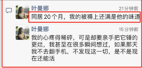 叶曼娜的好友听说后气愤不已,在朋友圈评论说,【狗男人,你这么优秀他怎么敢!!】