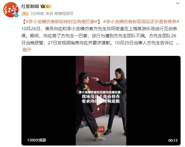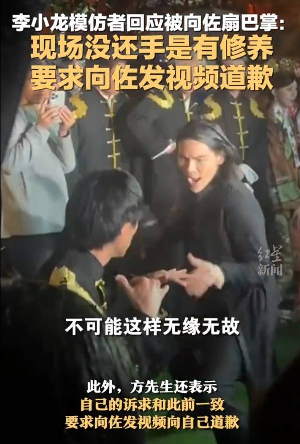 10月26日,演员向佐和李小龙模仿者方先生共同受邀在上海某游乐场进行互动表演。期间,向佐扇了方先生一巴掌,该行为遭到方先生团队不满。方先生团队26日当晚报警,27日发视频指责向佐并要求道歉。